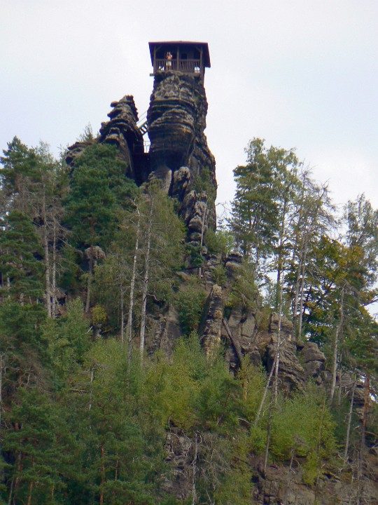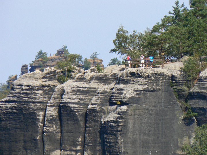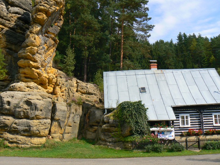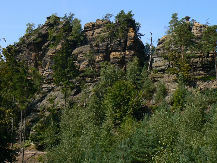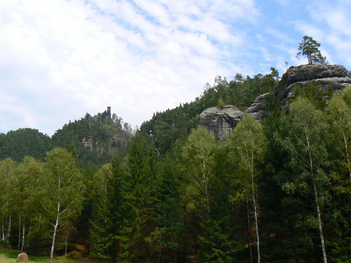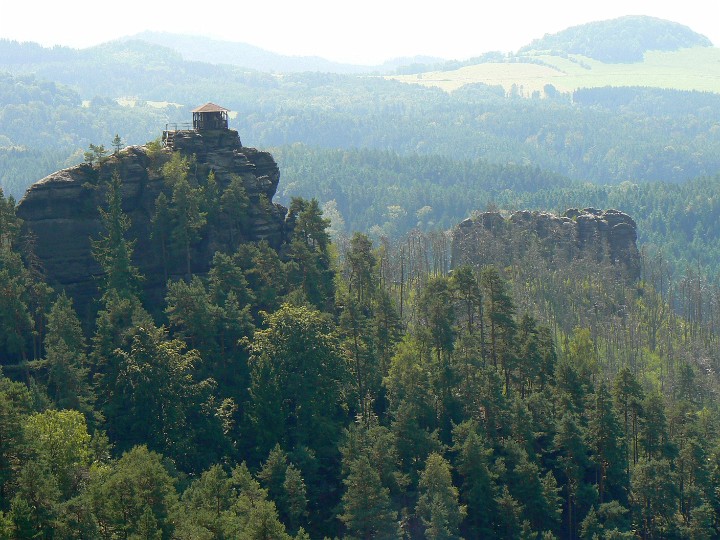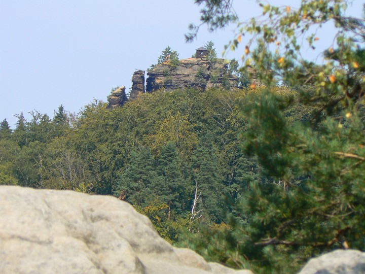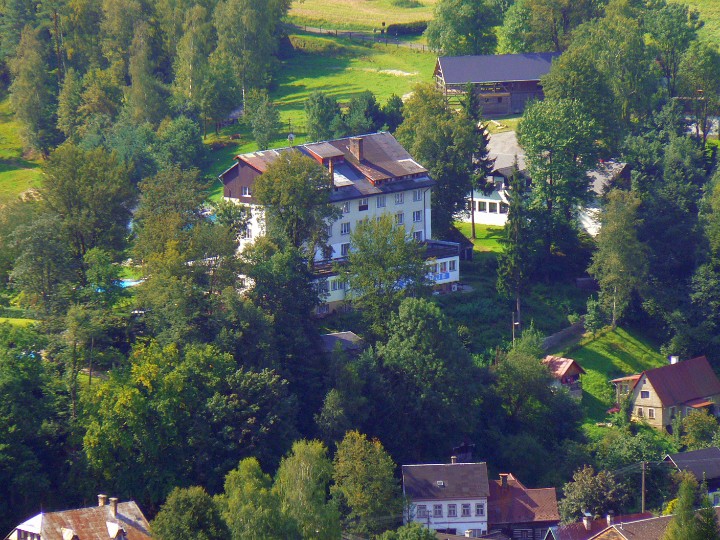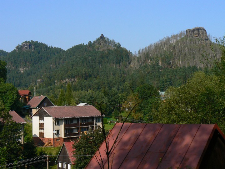 Z Mariiny skály na Jetřichovice Ta bílá kostka(fuj) je náš hotel