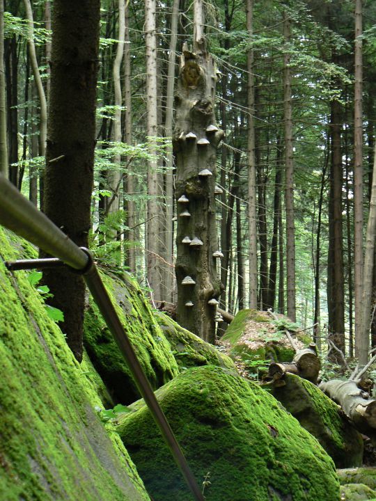 Pěkně obrostlý strom houbami