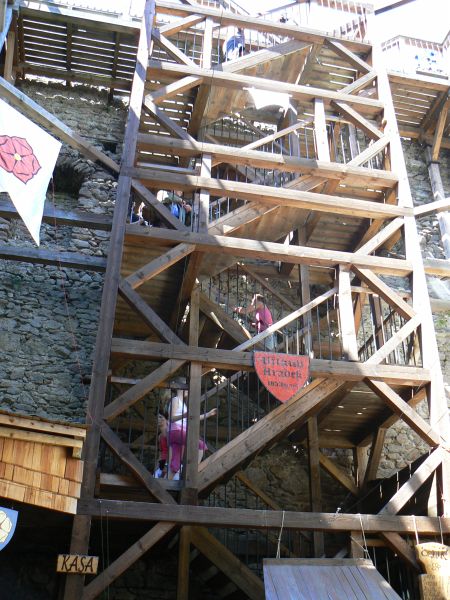 Také tam dobrovolníci vyprávějí o historii hradu a o opravách